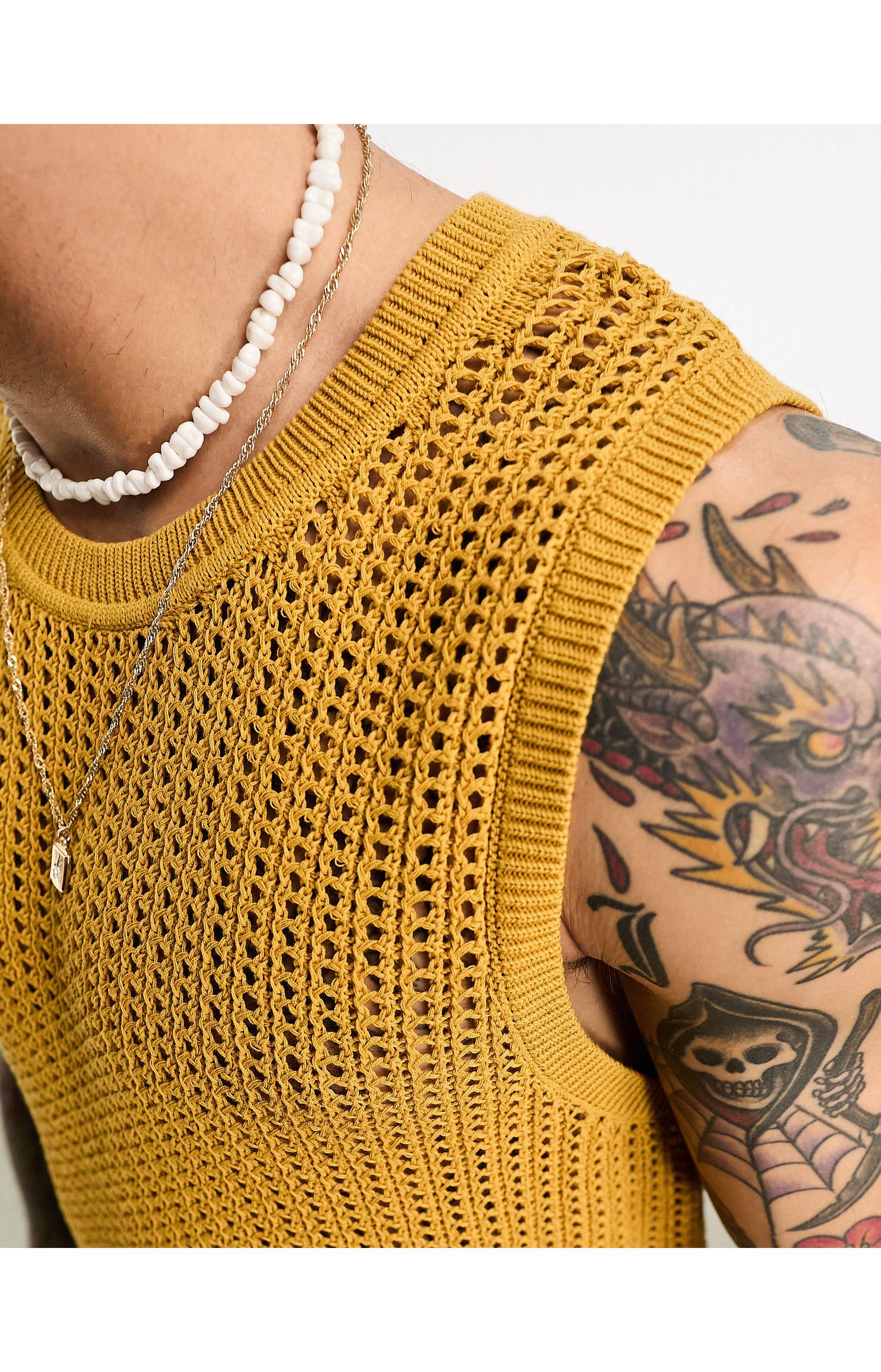 Asos Knitted Mesh Vest In Metallic For Men Lyst Uk